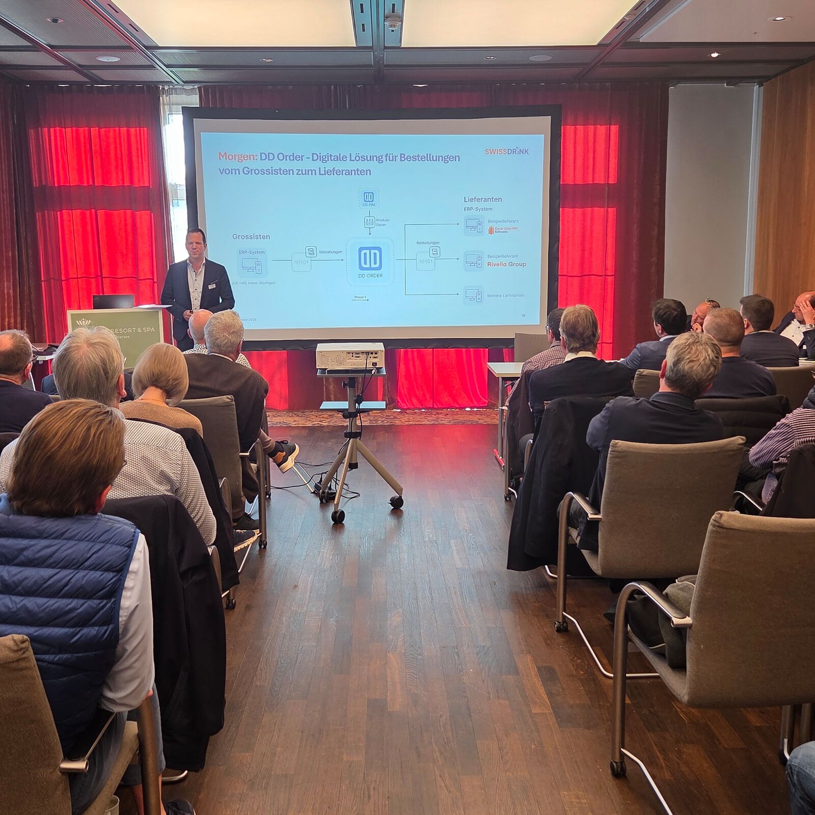 Einen besonderen Meilenstein markierte die einstimmige Zustimmung der Genossenschafter zum Projekt DD-Order. Pascal Homberger (DIGITALDRINK AG) stellte das neue Bestell-System vor, das erstmals eine einheitliche digitale Bestelllösung vom Grossisten bis zum Hersteller ermöglicht.